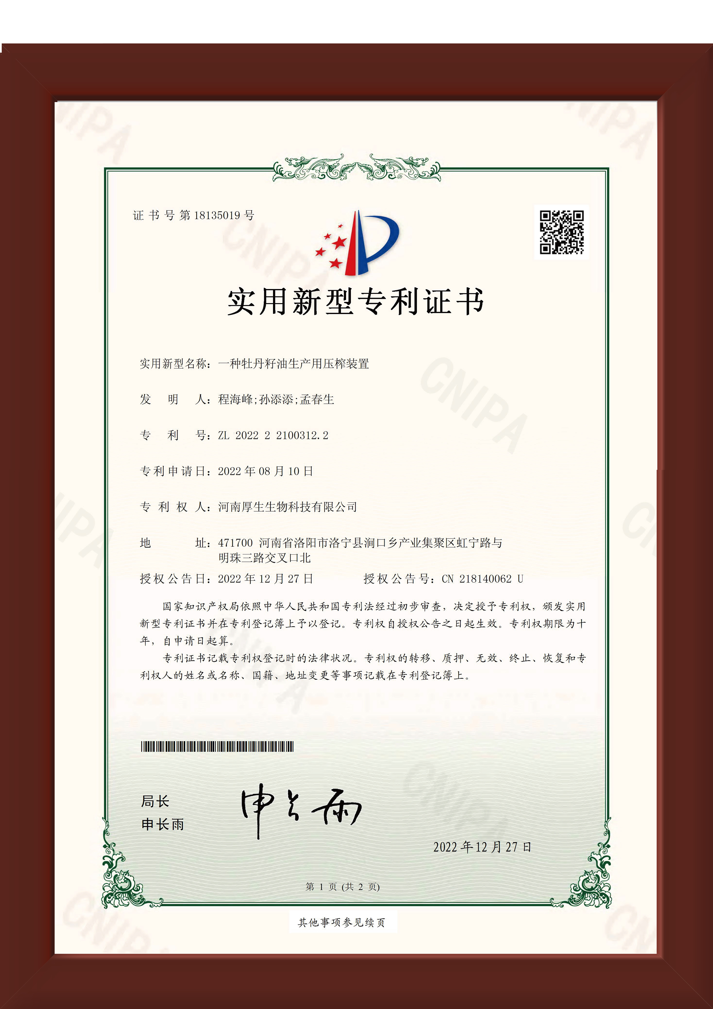 厚生坊產業集團以“生態木本油,健康中國人”為品牌愿景,集農業種植、生產加工和市場服務為一體,主打產品為“三油一花”,即牡丹籽油、核桃油、元寶楓油、牡丹花茶、與天然蜂蜜。厚生坊產業集團專注于“農業種植產業化、加工產業化、銷售產業化”的三產融合發展,活用林地資源,巧用坡耕地資源,大力發展木本經濟作物實現農業產業的可持續發展,從種子到餐桌層層把控產品健康品質,傾心打造“生態”“有機”“綠色”康養國人的健康食品。