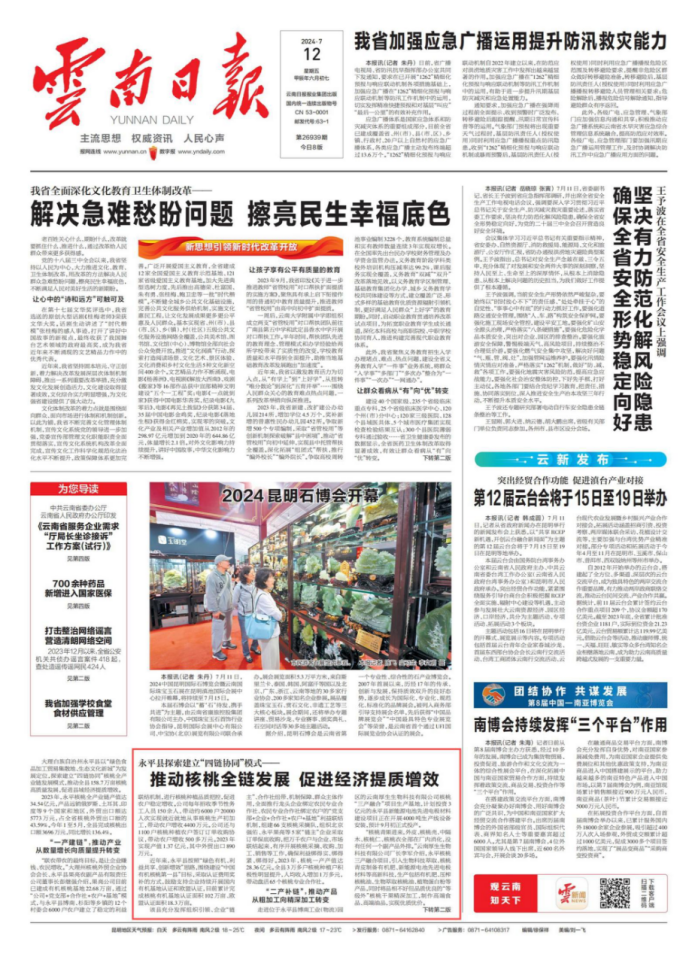 7月12日《云南日報》頭版刊文《永平縣探索建立“四鏈協同”模式——推動核桃全鏈發展 促進經濟提質增效》報道了北京厚生坊產業集團旗下云南厚生生物科技有限公司的核桃“三產融合”項目,引起了廣泛關注。